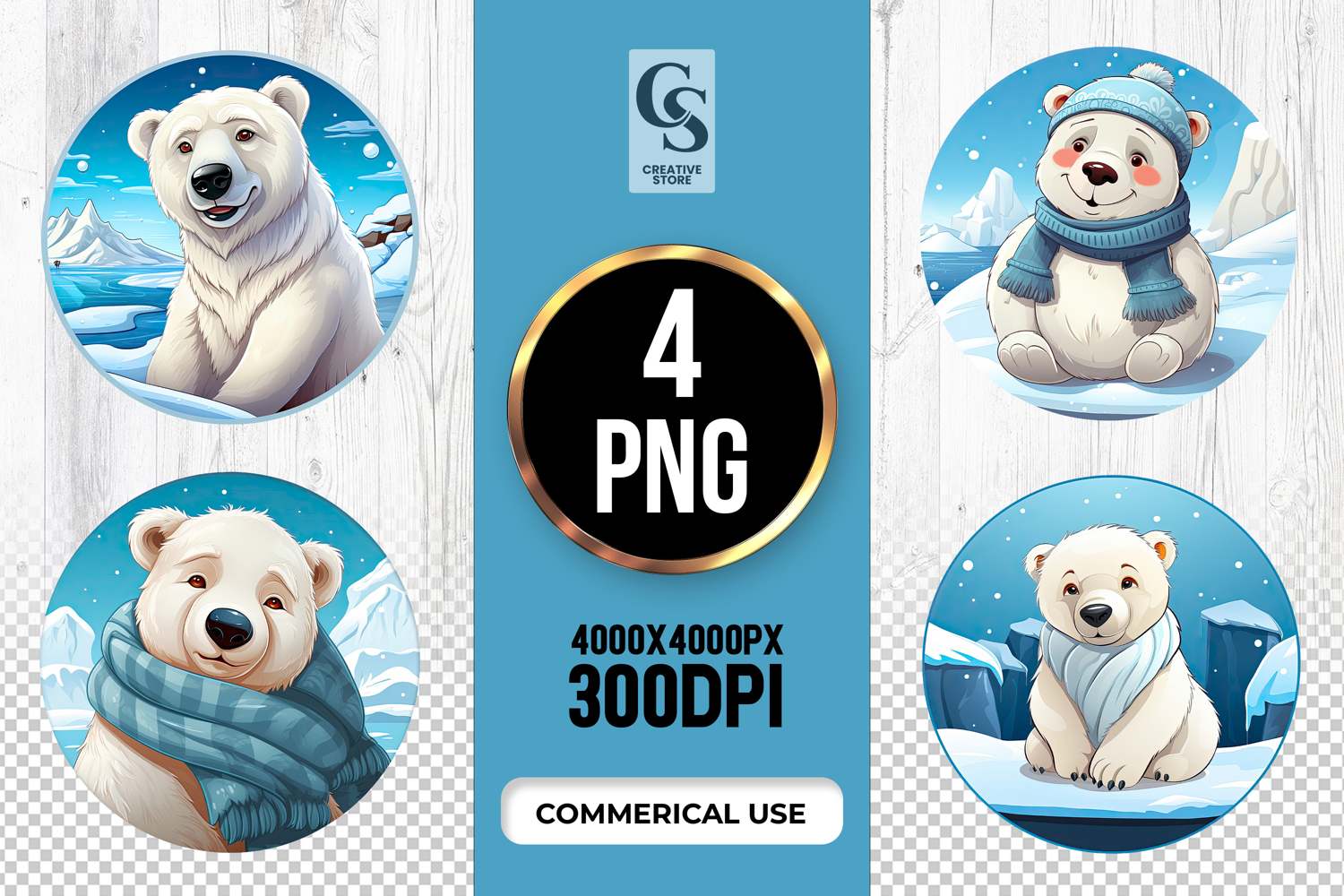4 Adorable Polar Bear Clipart Sublimation PNG Files Perfect for Greeting Cards, Invitations, Junk Journal, Party Decor, Scrapbooking and many other craft projects.