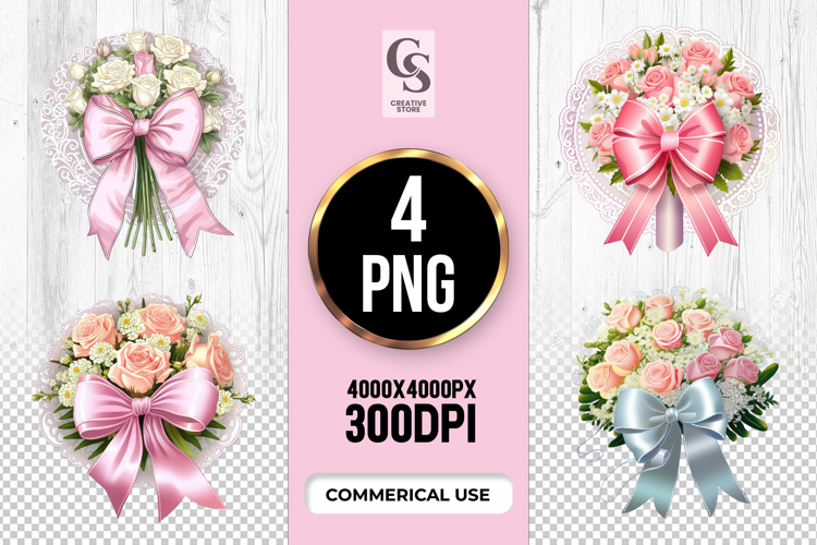 4 Elegant Rose Lace Bouquet Clipart Sublimation PNG Files Perfect for Greeting Cards, Invitations, Junk Journal, Party Decor, Scrapbooking and many other craft projects.