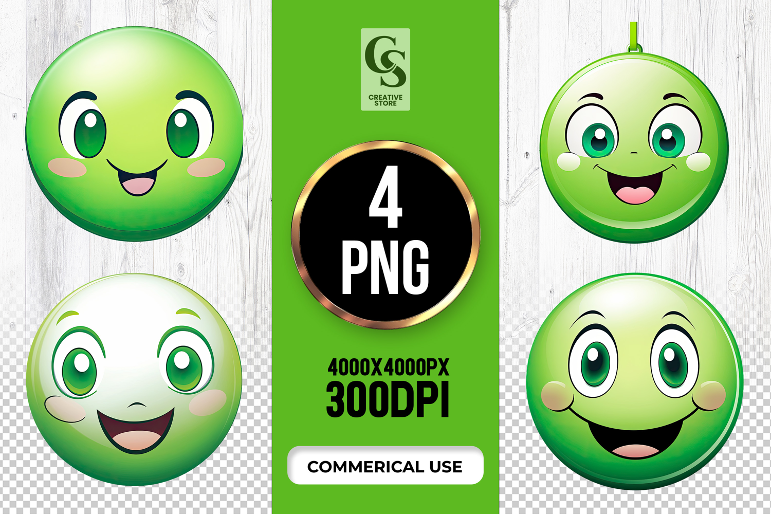 4 Green Smiley Face Emoji Clipart Sublimation PNG Files Perfect for Greeting Cards, Invitations, Junk Journal, Party Decor, Scrapbooking and many other craft projects.