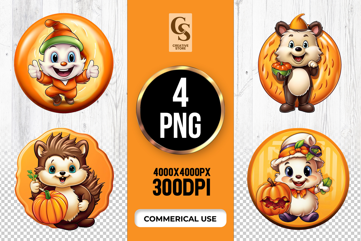 4 Cute Forest Animal Pumpkin Clipart Sublimation PNG Files Perfect for Greeting Cards, Invitations, Junk Journal, Party Decor, Scrapbooking and many other craft projects.