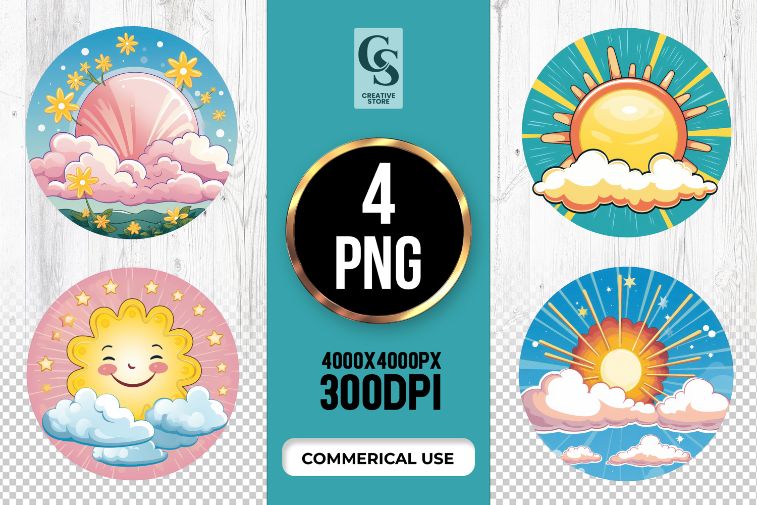 4 Cute Sunshine And Cloud Clipart Sublimation PNG Files Perfect for Greeting Cards, Invitations, Junk Journal, Party Decor, Scrapbooking and many other craft projects.