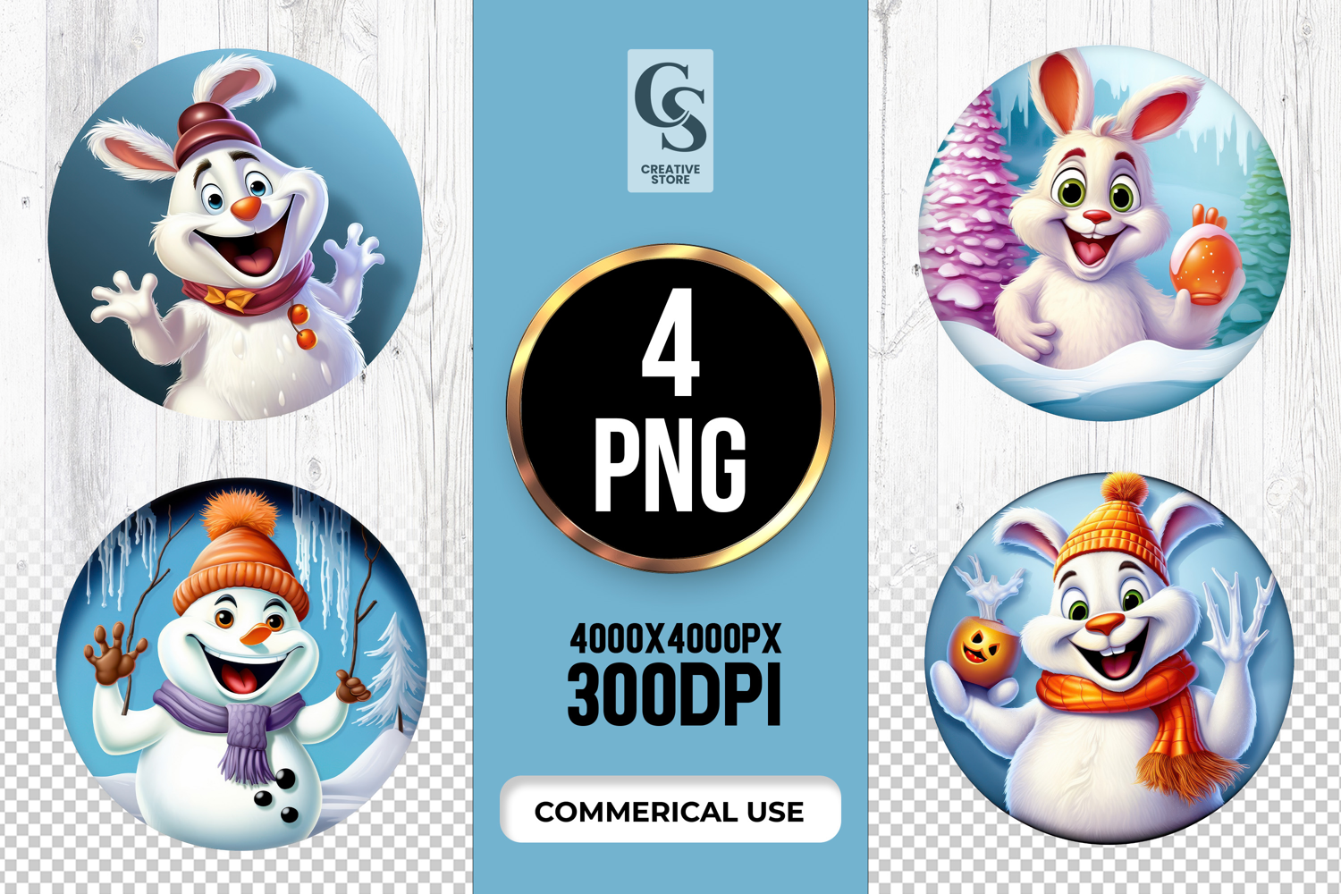 4 Cute Winter Bunny And Snowman Clipart Sublimation PNG Files Perfect for Greeting Cards, Invitations, Junk Journal, Party Decor, Scrapbooking and many other craft projects.