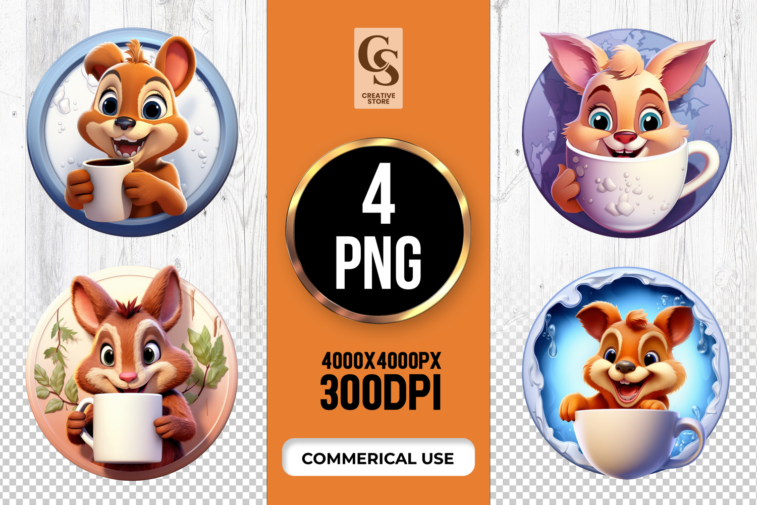 4 Cute Bunny With Coffee Mug Clipart Sublimation PNG Files Perfect for Greeting Cards, Invitations, Junk Journal, Party Decor, Scrapbooking and many other craft projects.