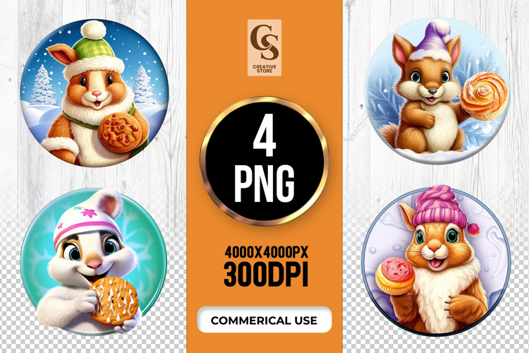 4 Cute Winter Bunny With Cookies Clipart Sublimation PNG Files Perfect for Greeting Cards, Invitations, Junk Journal, Party Decor, Scrapbooking and many other craft projects.
