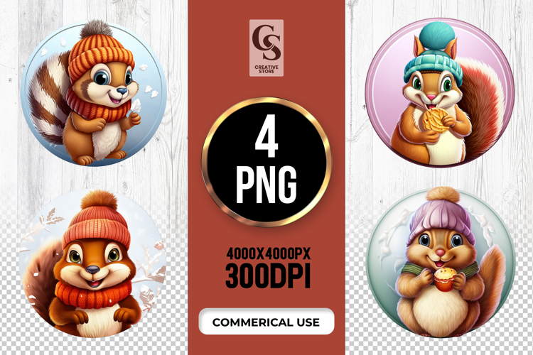 4 Cute Squirrel In Winter Outfit Clipart Sublimation PNG Files Perfect for Greeting Cards, Invitations, Junk Journal, Party Decor, Scrapbooking and many other craft projects.