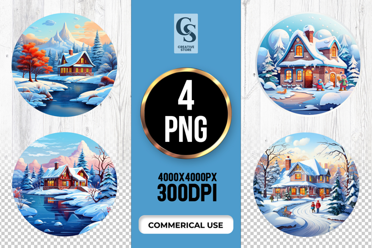 4 Snow Cabin Scenery clipart sublimation png Files Perfect for Greeting Cards, Invitations, Junk Journal, Party Decor, Scrapbooking and many other craft projects.