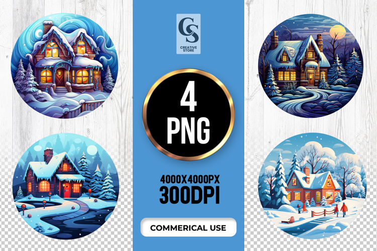 4 Cozy Winter House clipart sublimation png Files Perfect for Greeting Cards, Invitations, Junk Journal, Party Decor, Scrapbooking and many other craft projects.