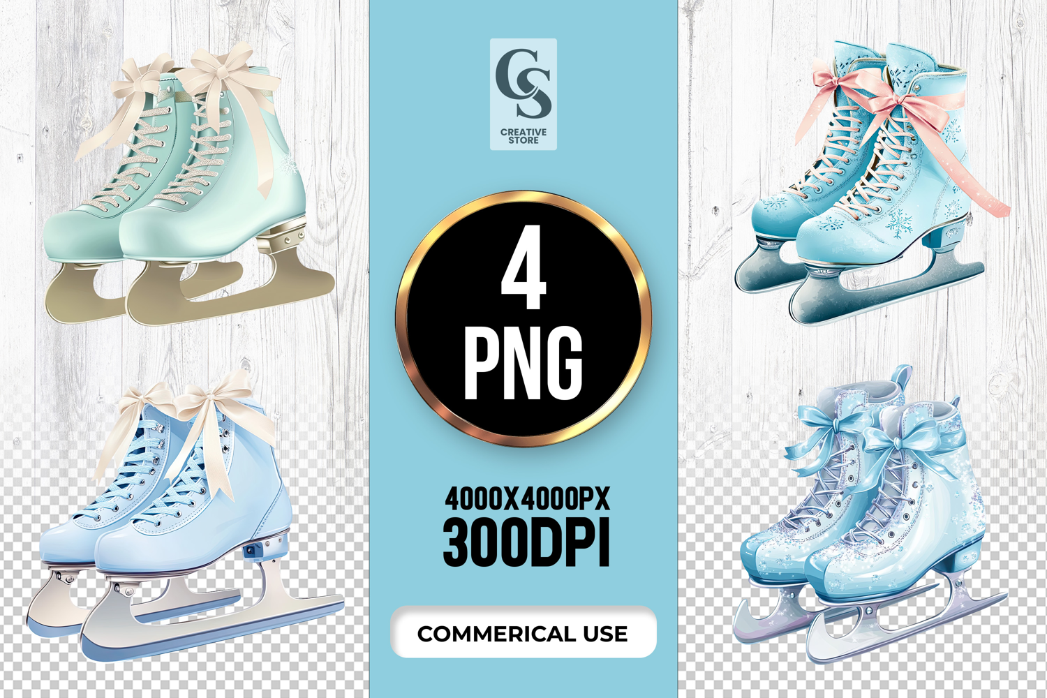 4 Watercolor Blue Ice Skates Shoes Illustration Clipart PNG Files Perfect for Greeting Cards, Invitations, Junk Journal, Party Decor, Scrapbooking and many other craft projects.