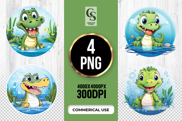 4 Cute Baby Crocodile Clipart Sublimation PNG Files Perfect for Greeting Cards, Invitations, Junk Journal, Party Decor, Scrapbooking and many other craft projects.