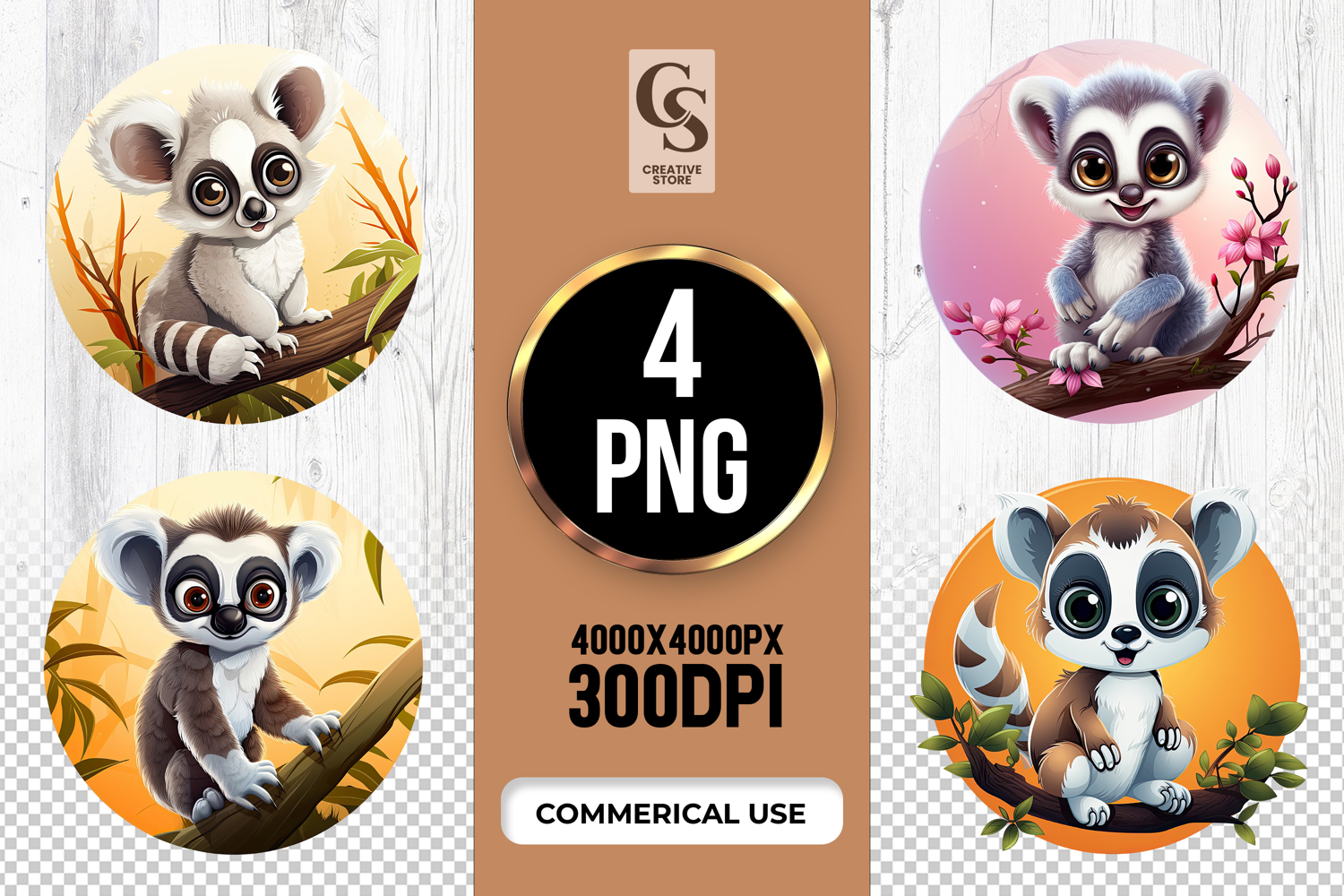4 Cute Lemur Clipart Sublimation PNG Files Perfect for Greeting Cards, Invitations, Junk Journal, Party Decor, Scrapbooking and many other craft projects.