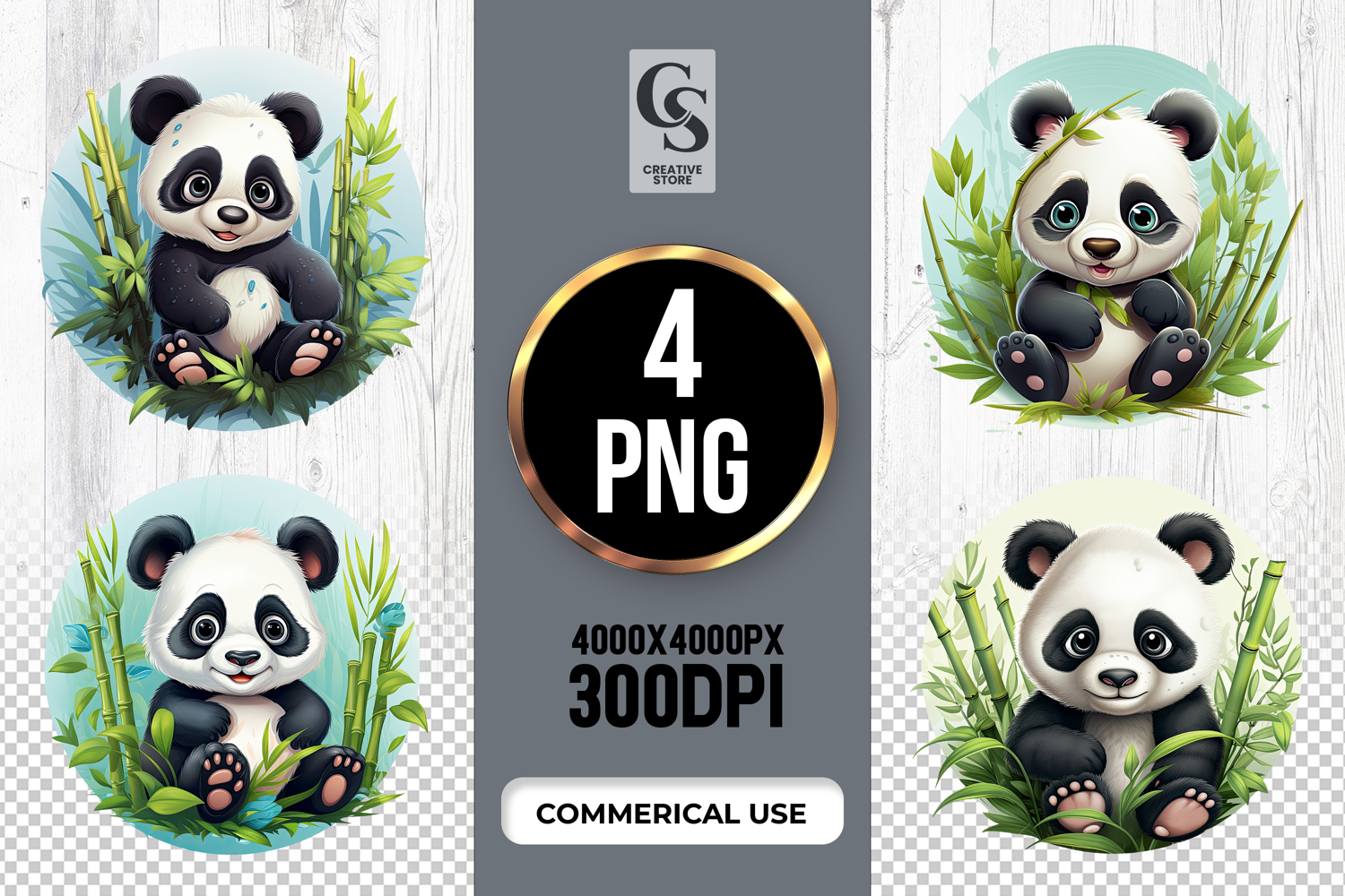 4 Cute Panda Bear Clipart Sublimation PNG Files Perfect for Greeting Cards, Invitations, Junk Journal, Party Decor, Scrapbooking and many other craft projects.
