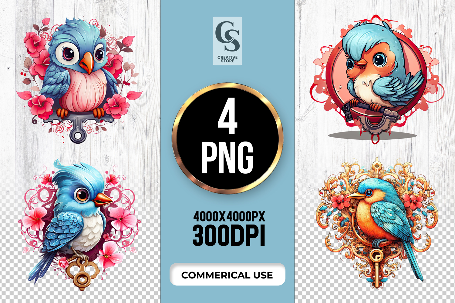 4 Colorful Bird Clipart Sublimation PNG Files Perfect for Greeting Cards, Invitations, Junk Journal, Party Decor, Scrapbooking and many other craft projects.