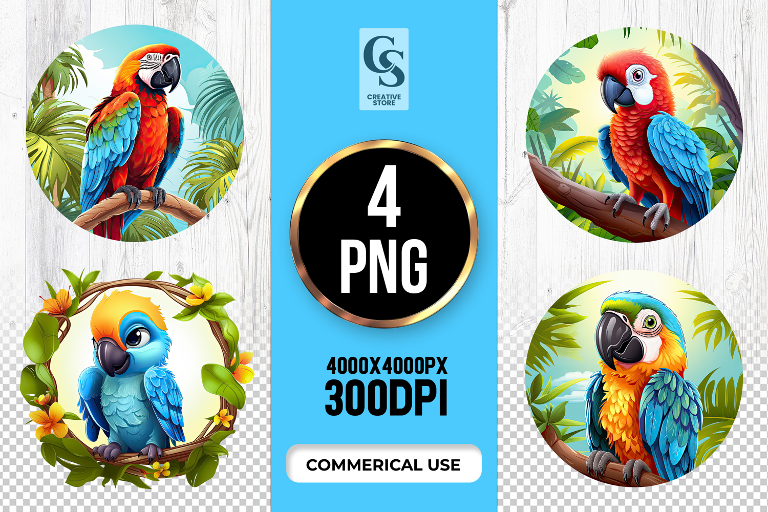 4 Colorful Parrot Clipart Sublimation PNG Files Perfect for Greeting Cards, Invitations, Junk Journal, Party Decor, Scrapbooking and many other craft projects.