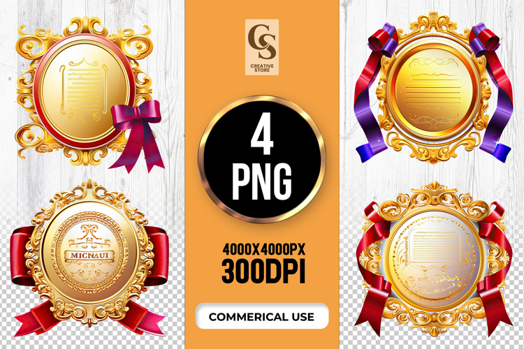 4 Golden Award Frame Clipart Sublimation PNG Files Perfect for Greeting Cards, Invitations, Junk Journal, Party Decor, Scrapbooking and many other craft projects.