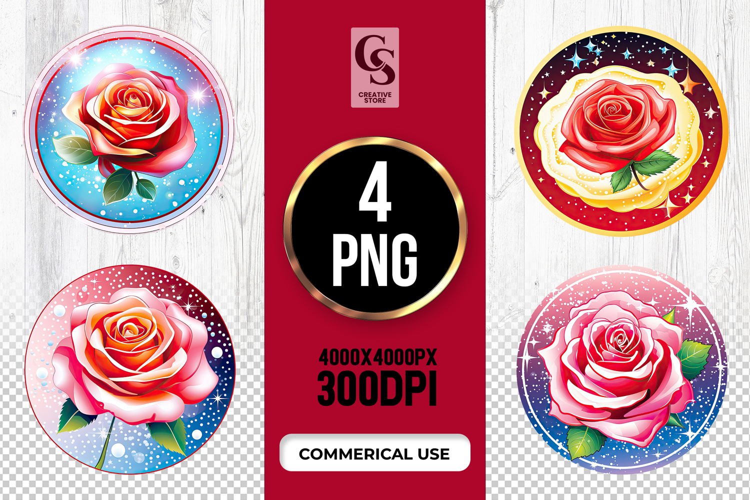 4 Fantasy Rose Clipart Sublimation PNG Files Perfect for Greeting Cards, Invitations, Junk Journal, Party Decor, Scrapbooking and many other craft projects.