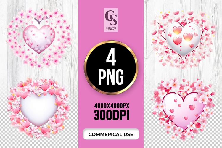 4 Pink Floral Heart Frame Clipart Sublimation PNG Files Perfect for Greeting Cards, Invitations, Junk Journal, Party Decor, Scrapbooking and many other craft projects.
