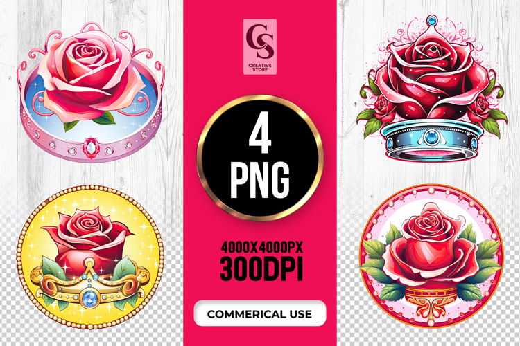 4 Royal Rose Crown Clipart Sublimation PNG Files Perfect for Greeting Cards, Invitations, Junk Journal, Party Decor, Scrapbooking and many other craft projects.