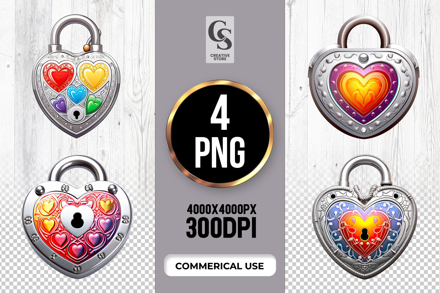 4 Heart Lock Clipart Sublimation PNG Files Perfect for Greeting Cards, Invitations, Junk Journal, Party Decor, Scrapbooking and many other craft projects.