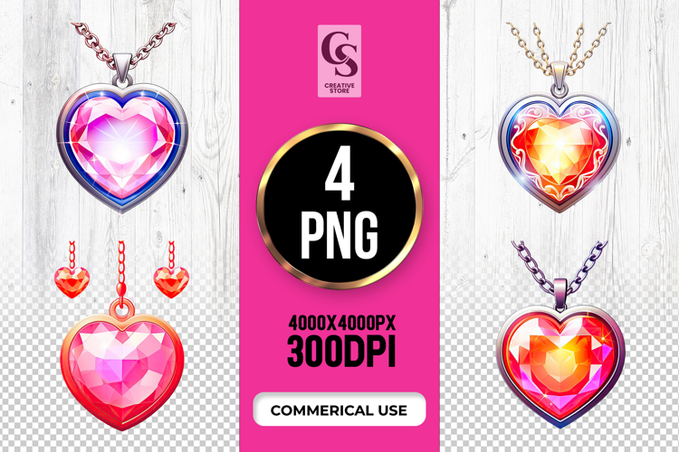 4 Heart Pendant Clipart Sublimation PNG Files Perfect for Greeting Cards, Invitations, Junk Journal, Party Decor, Scrapbooking and many other craft projects.
