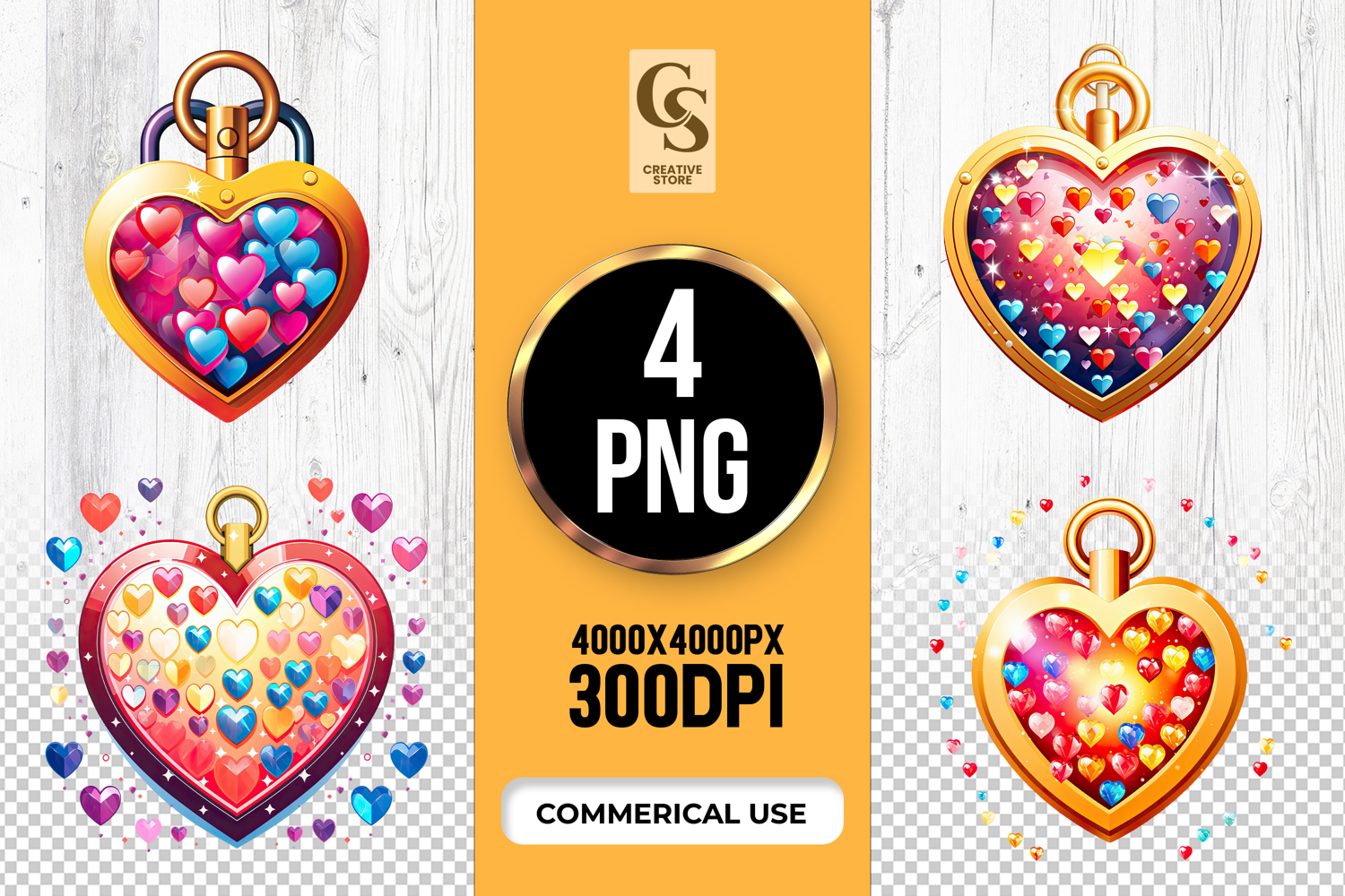 4 Heart Charm Lock Clipart Sublimation PNG Files Perfect for Greeting Cards, Invitations, Junk Journal, Party Decor, Scrapbooking and many other craft projects.