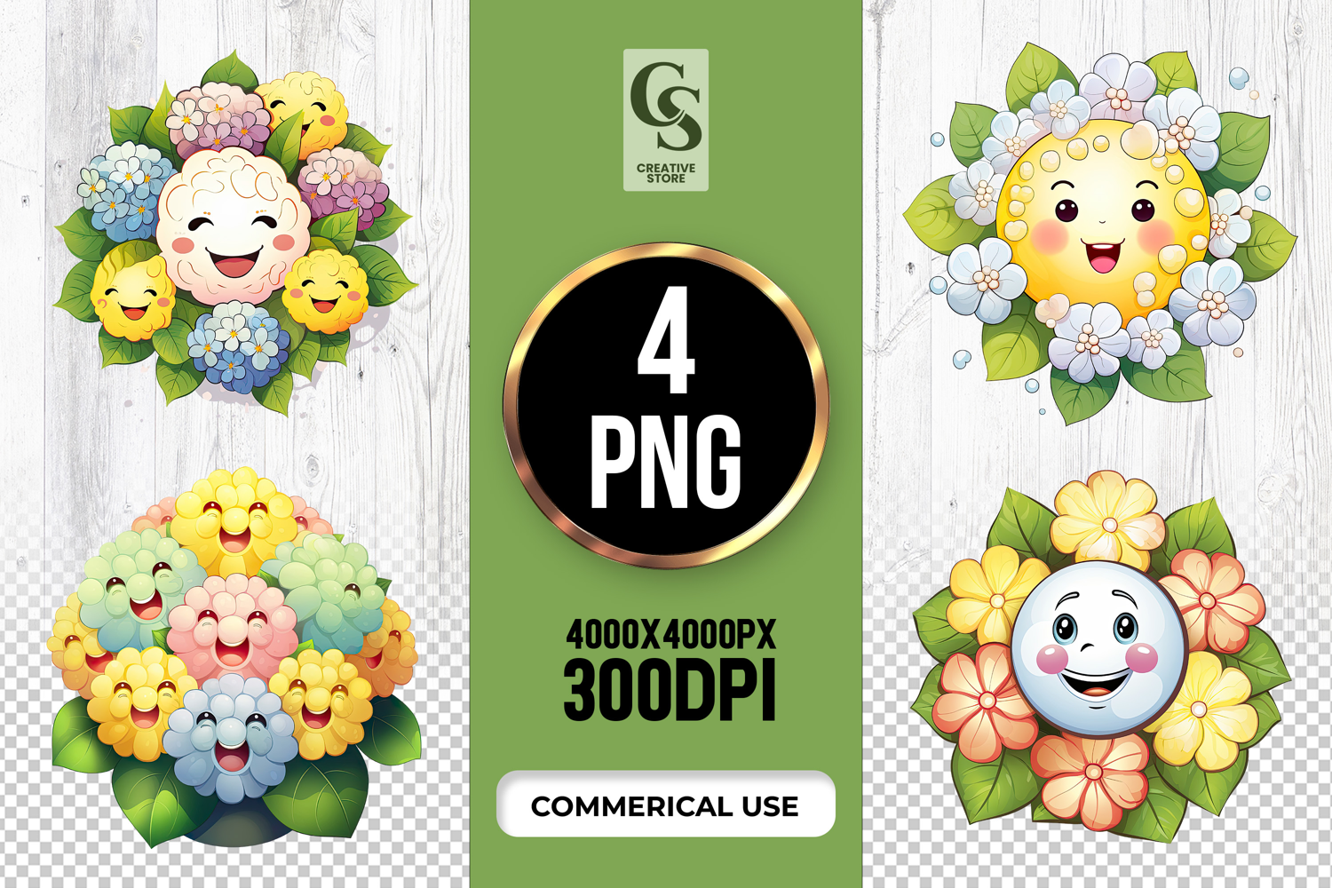 Cute Flower Faces Clipart Sublimation PNG example image 1