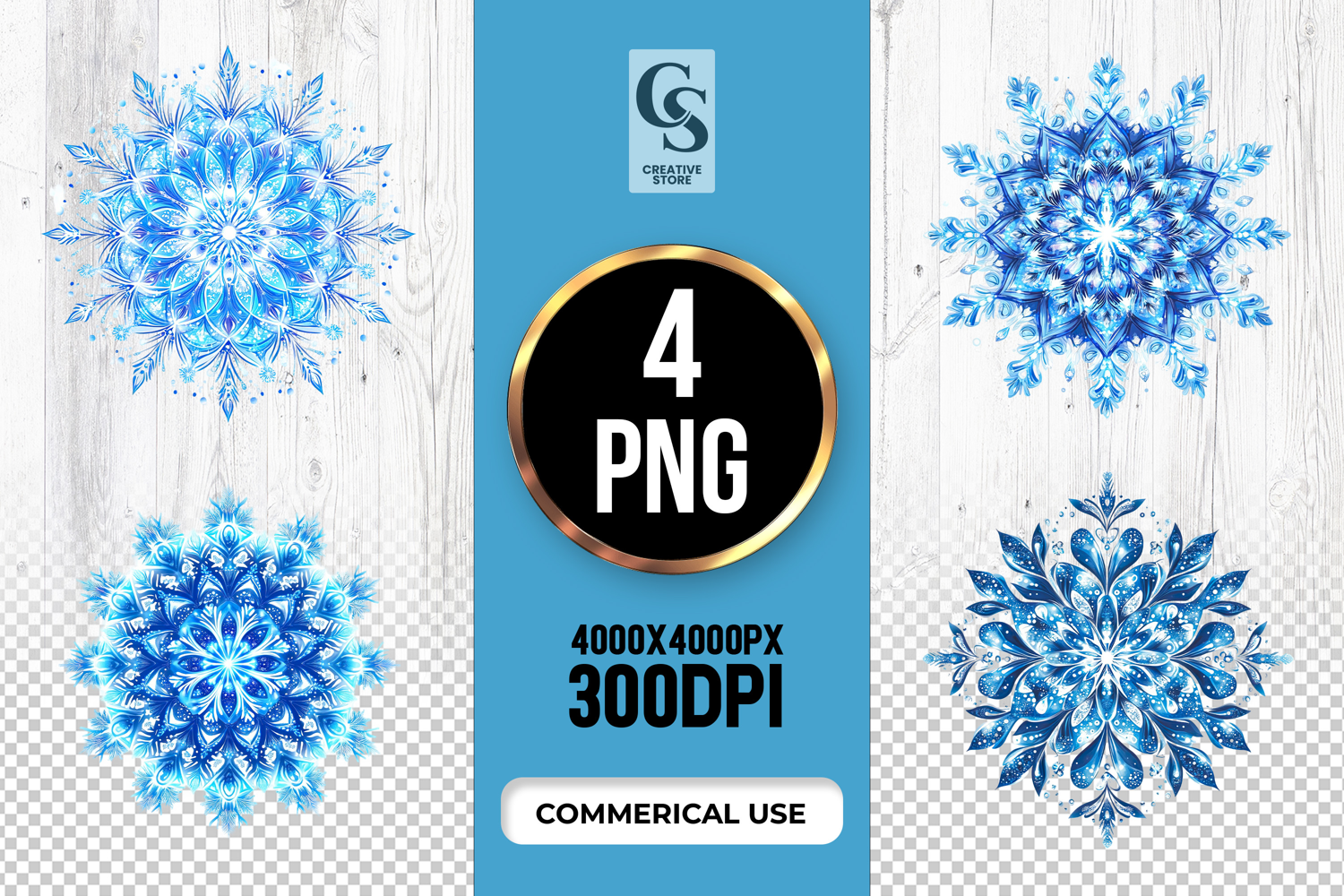 4 Blue Crystal Snowflake Clipart Sublimation Png Files Perfect for Greeting Cards, Invitations, Junk Journal, Party Decor, Scrapbooking and many other craft projects.