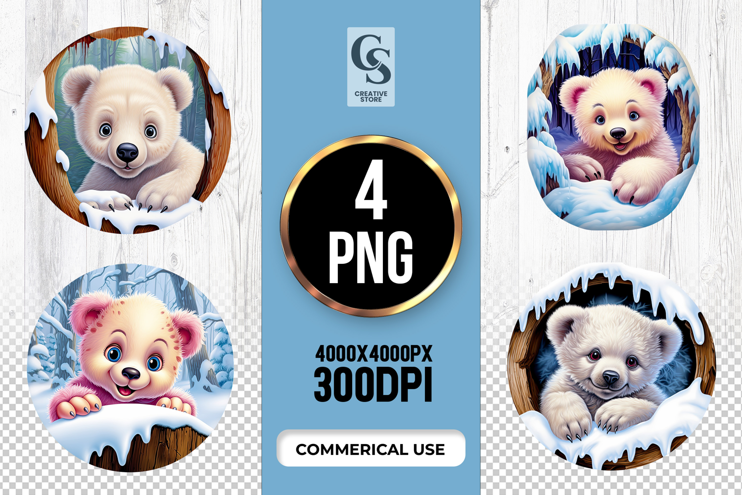 4 Cute Baby Polar Bear Winter Snow Clipart Sublimation Png Files Perfect for Greeting Cards, Invitations, Junk Journal, Party Decor, Scrapbooking and many other craft projects.