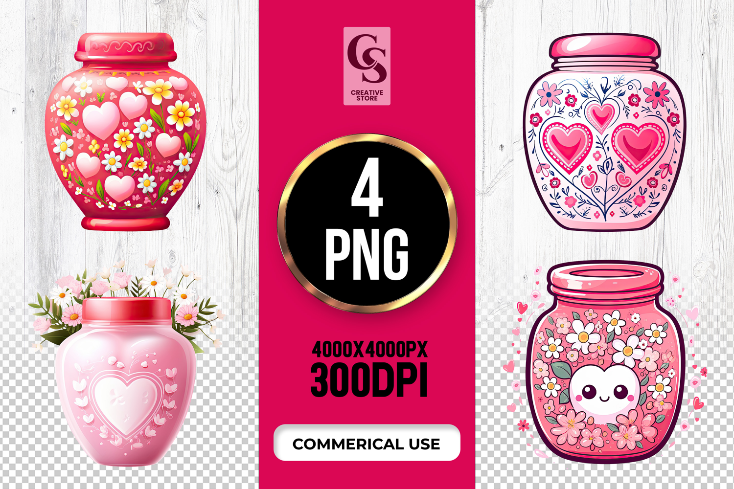 4 Floral Heart Jar Clipart Sublimation PNG Files Perfect for Greeting Cards, Invitations, Junk Journal, Party Decor, Scrapbooking and many other craft projects.