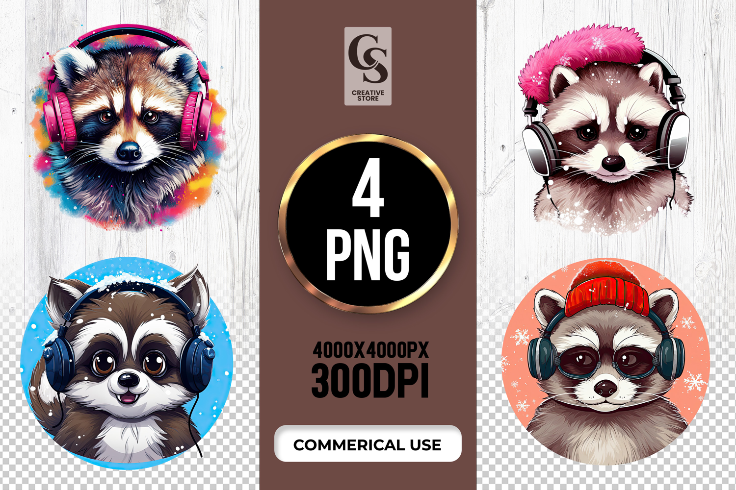4 Raccoon Headphones Clipart Sublimation PNG Files Perfect for Greeting Cards, Invitations, Junk Journal, Party Decor, Scrapbooking and many other craft projects.