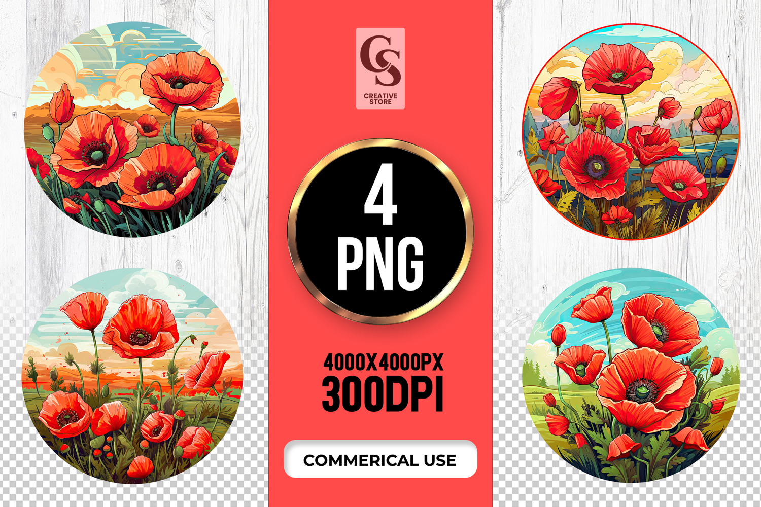 4 Poppy Flower Field Clipart Sublimation PNG Files Perfect for Greeting Cards, Invitations, Junk Journal, Party Decor, Scrapbooking and many other craft projects.
