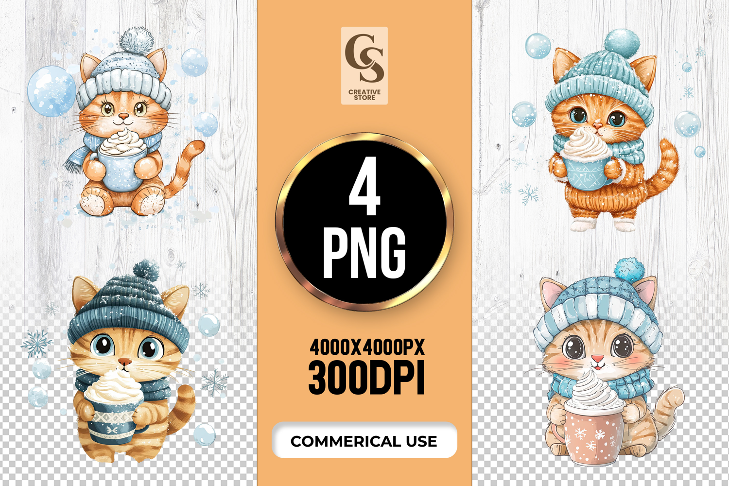 Cute Winter Cat Cup Clipart Sublimation PNG example image 1