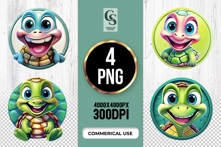 4 Cute Baby Turtle Cartoon Clipart Sublimation PNG Files Perfect for Greeting Cards, Invitations, Junk Journal, Party Decor, Scrapbooking and many other craft projects.