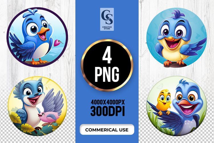 4 Blue Bird Family Clipart Sublimation PNG Files Perfect for Greeting Cards, Invitations, Junk Journal, Party Decor, Scrapbooking and many other craft projects.