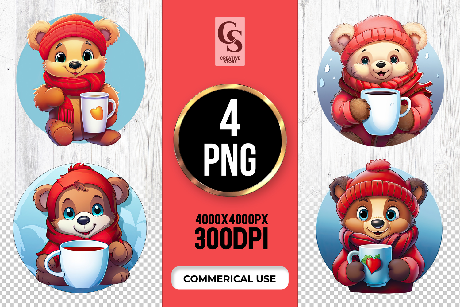4 Cozy Bear Mug Clipart Sublimation PNG Files Perfect for Greeting Cards, Invitations, Junk Journal, Party Decor, Scrapbooking and many other craft projects.