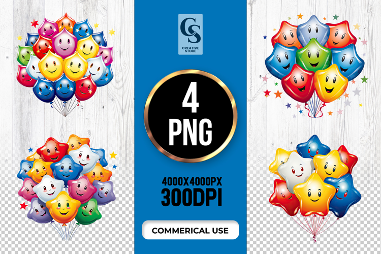 Colorful Star Balloon Faces Clipart Sublimation PNG example image 1