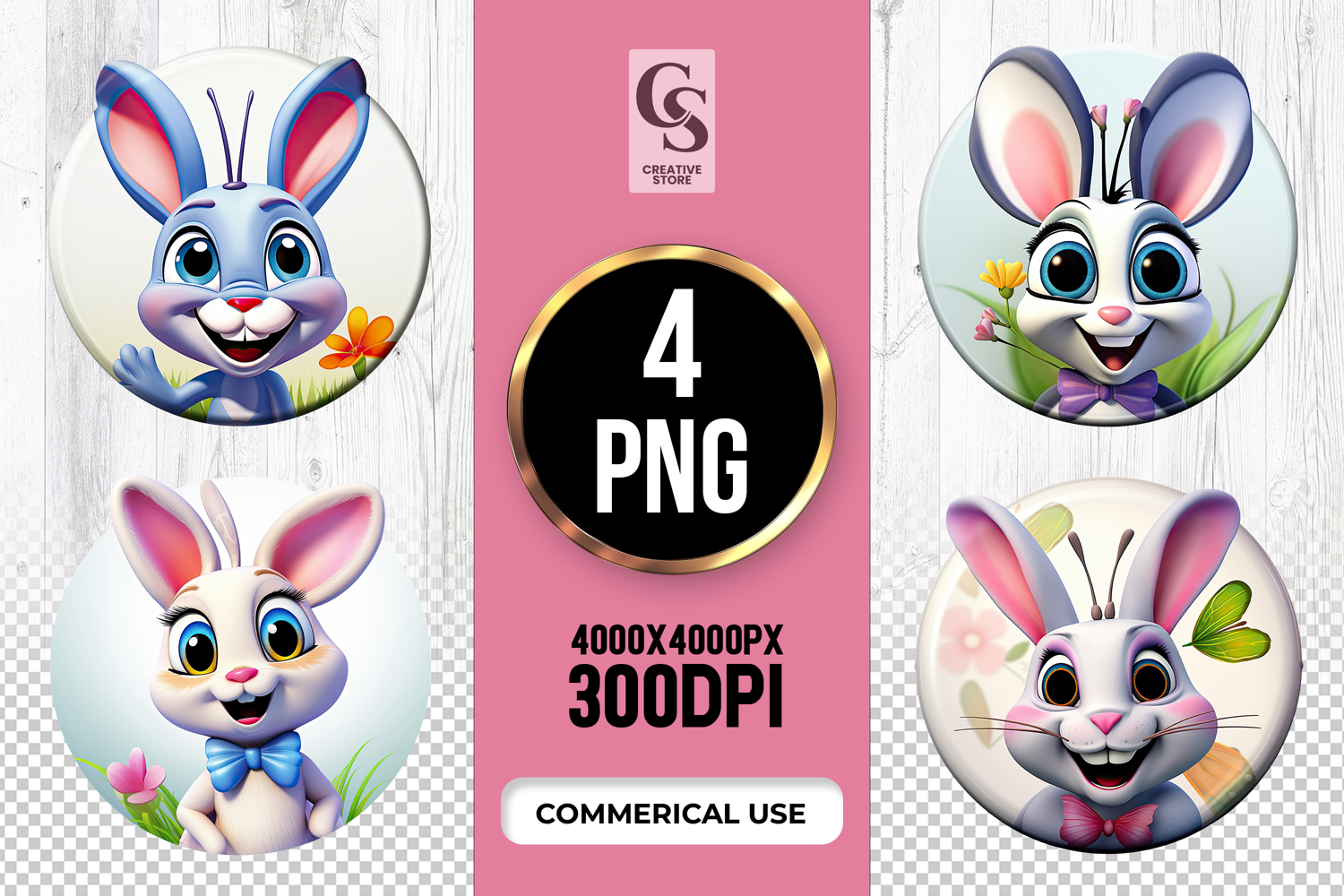 4 Cute Bunny Clipart Sublimation PNG Files Perfect for Greeting Cards, Invitations, Junk Journal, Party Decor, Scrapbooking and many other craft projects.