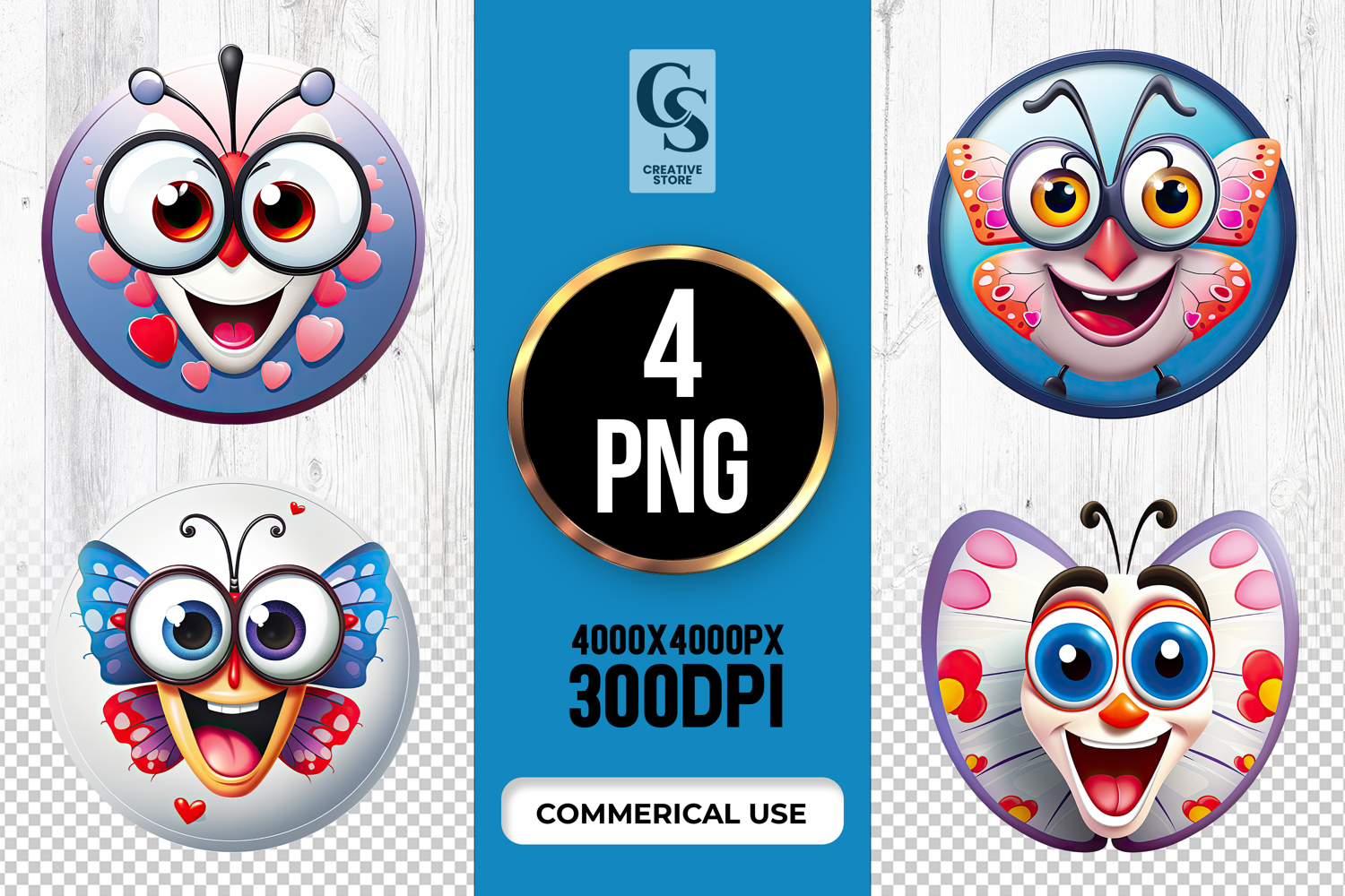 4 Cute Butterfly Faces Clipart Sublimation PNG Files Perfect for Greeting Cards, Invitations, Junk Journal, Party Decor, Scrapbooking and many other craft projects.