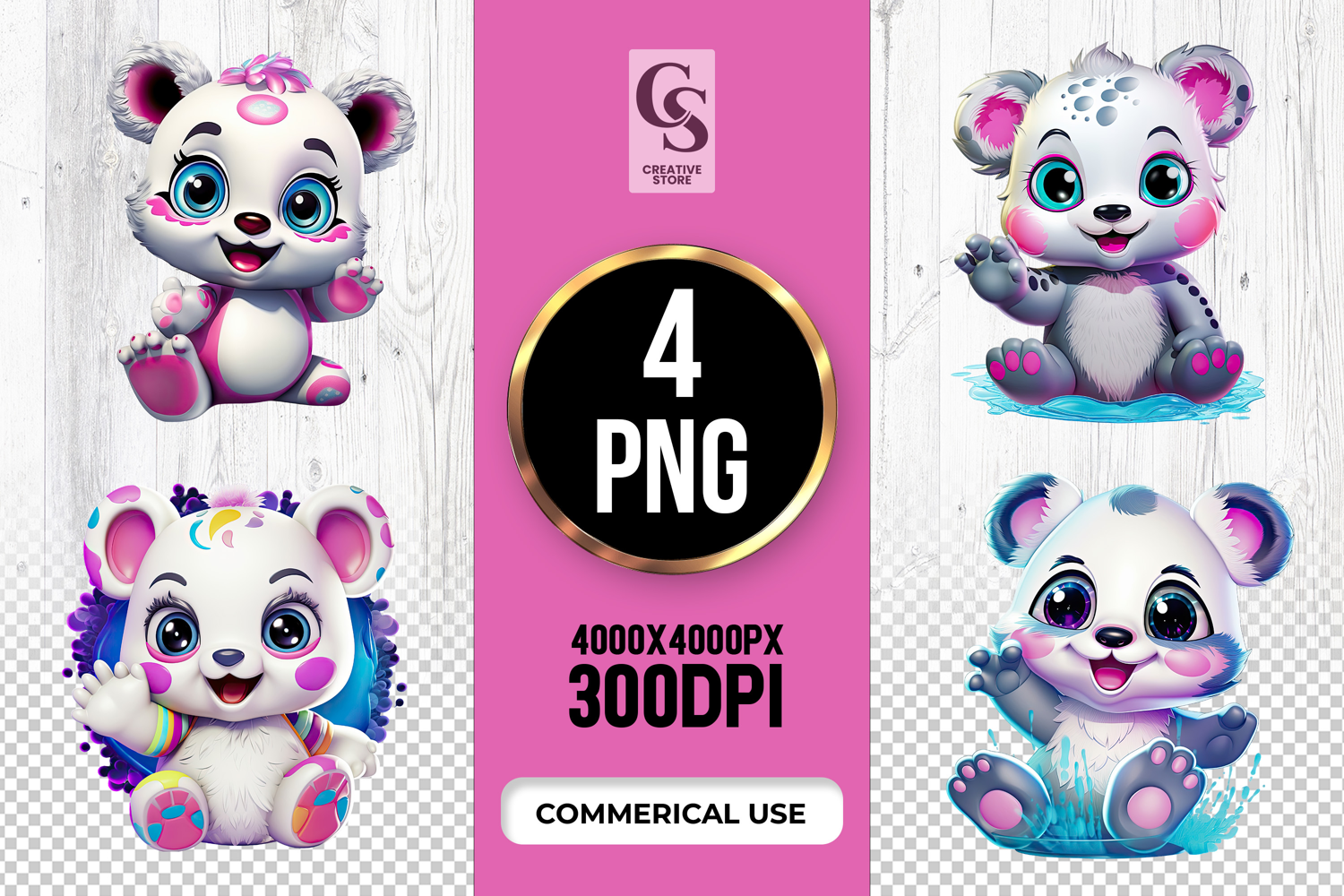 4 Cute Baby Panda Clipart Sublimation PNG Files Perfect for Greeting Cards, Invitations, Junk Journal, Party Decor, Scrapbooking and many other craft projects.