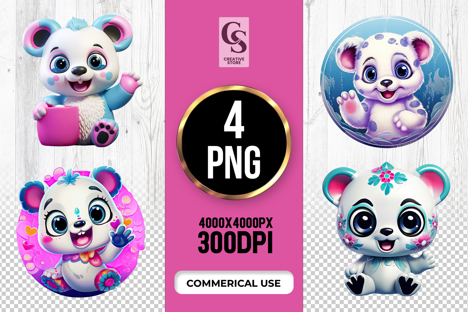 4 Cute Colorful Bear Clipart Sublimation PNG Files Perfect for Greeting Cards, Invitations, Junk Journal, Party Decor, Scrapbooking and many other craft projects.