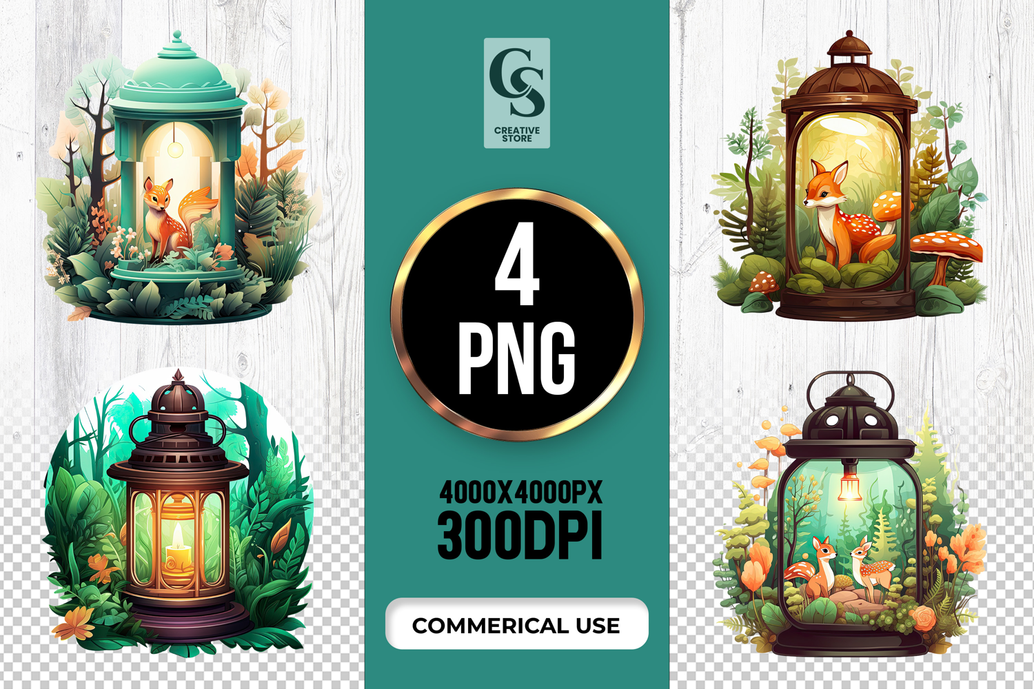 4 Forest Lantern Deer Clipart Sublimation PNG Files Perfect for Greeting Cards, Invitations, Junk Journal, Party Decor, Scrapbooking and many other craft projects.