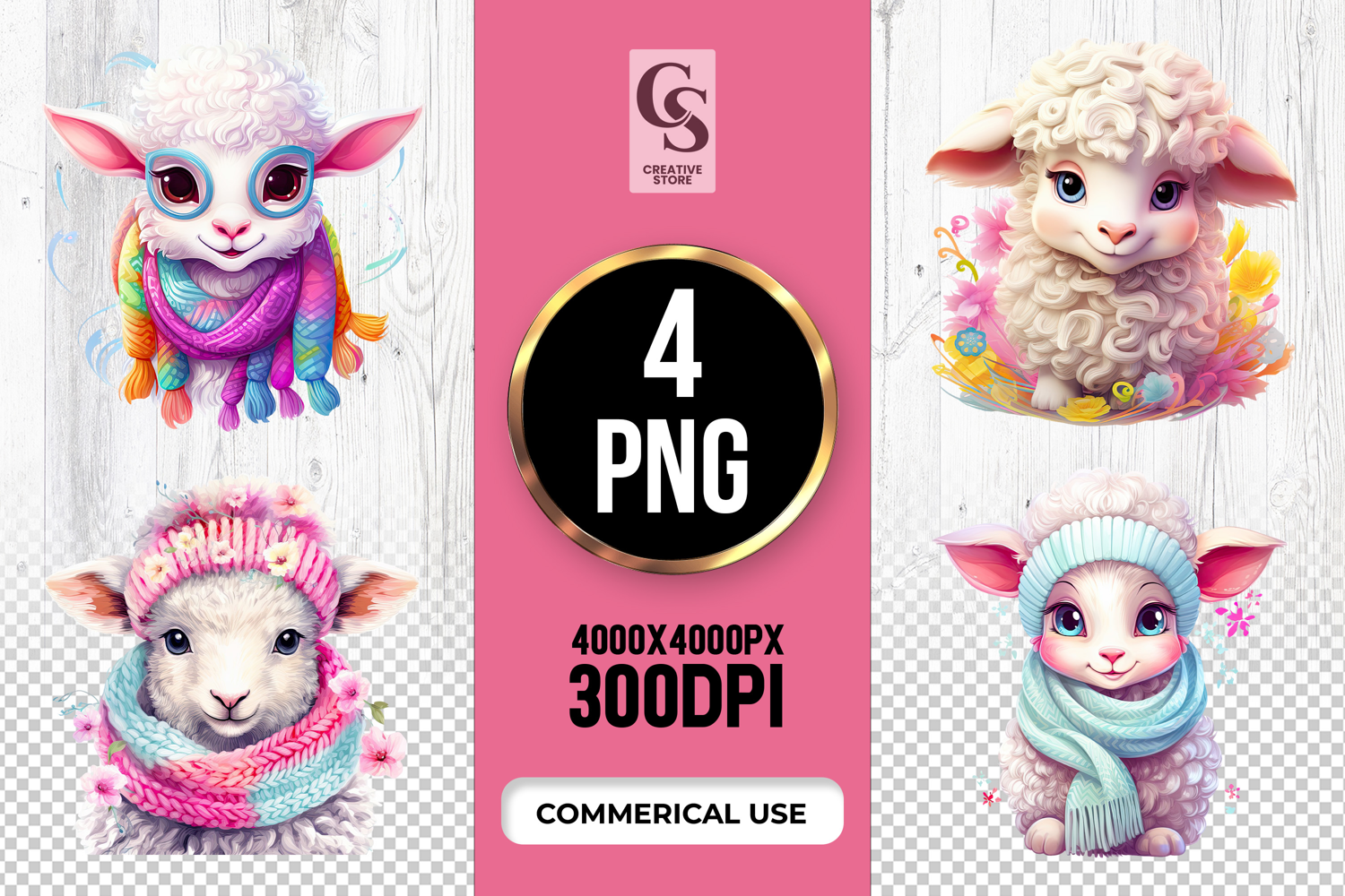 4 Winter Baby Lamb Clipart Sublimation PNG Files Perfect for Greeting Cards, Invitations, Junk Journal, Party Decor, Scrapbooking and many other craft projects.