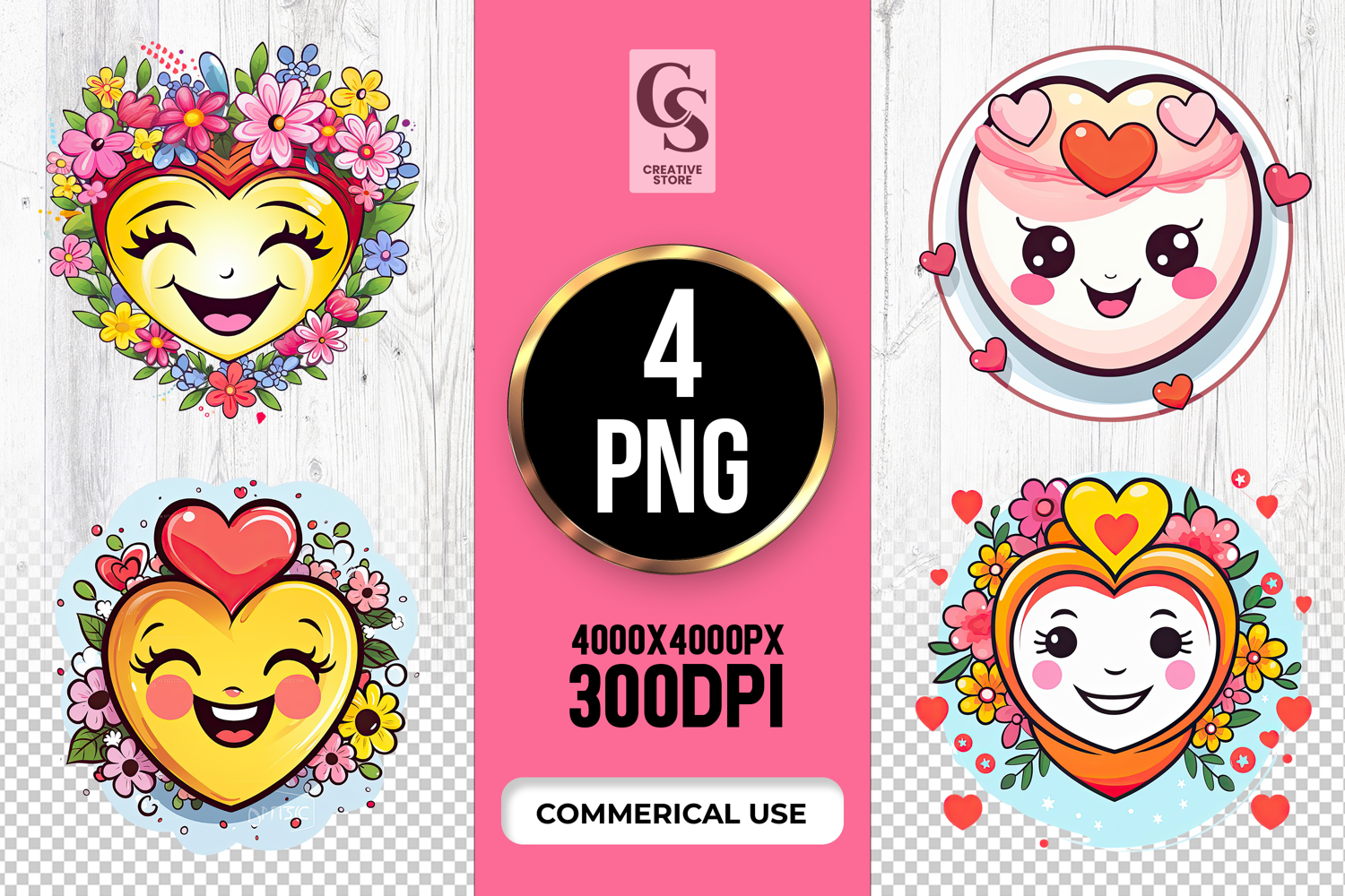 4 Cute Heart Faces Clipart Sublimation PNG Files Perfect for Greeting Cards, Invitations, Junk Journal, Party Decor, Scrapbooking and many other craft projects.
