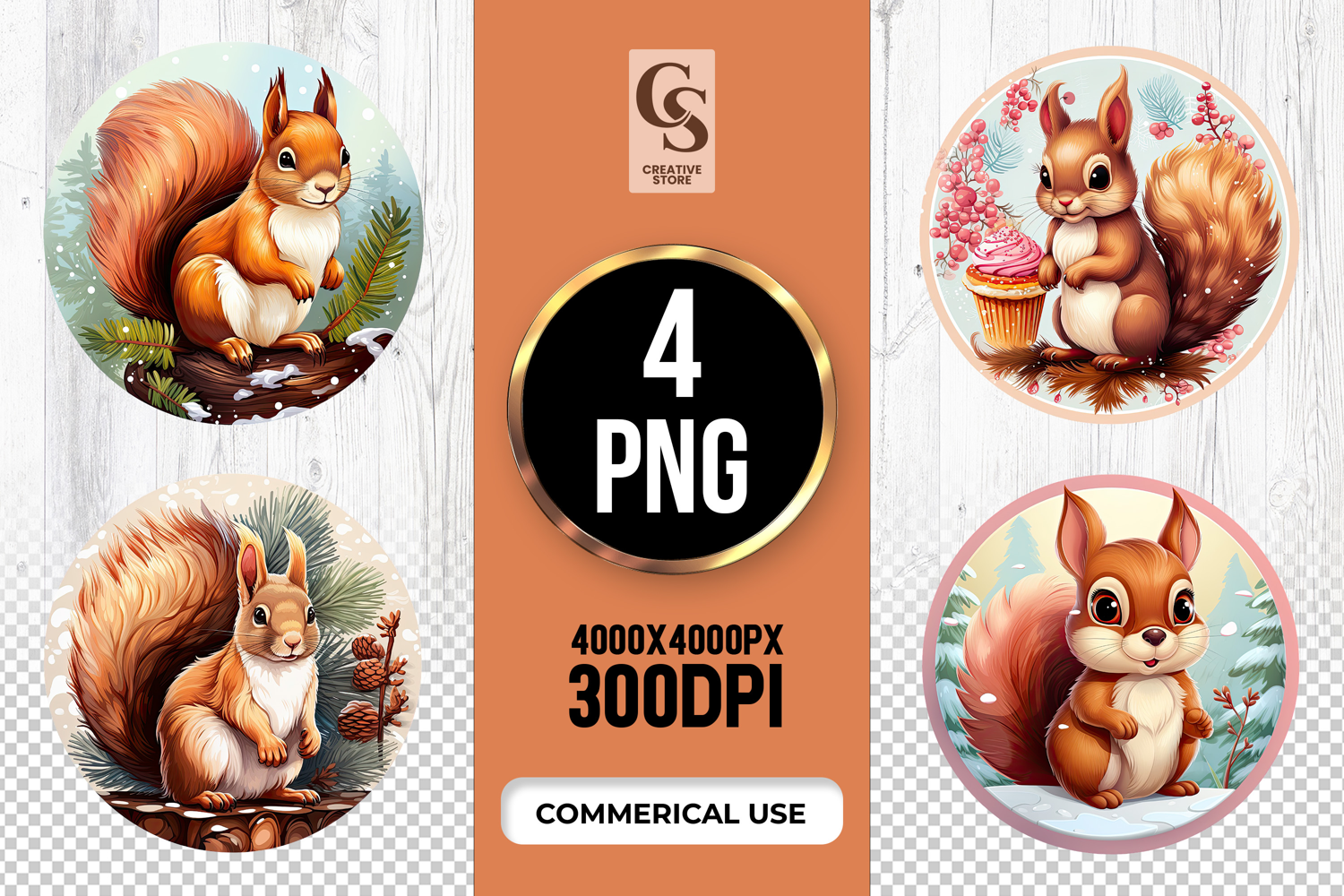 4 Winter Squirrel Clipart Sublimation PNG Files Perfect for Greeting Cards, Invitations, Junk Journal, Party Decor, Scrapbooking and many other craft projects.