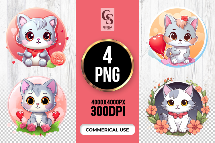 4 Cute Heart Cat Clipart Sublimation PNG Files Perfect for Greeting Cards, Invitations, Junk Journal, Party Decor, Scrapbooking and many other craft projects.