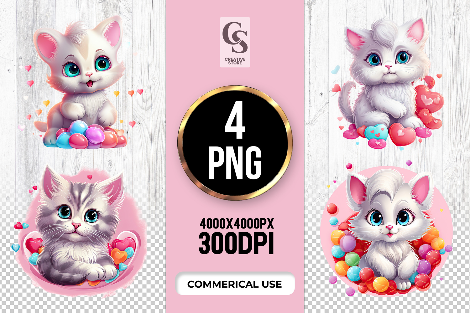 4 Cute Kawaii Kitten Candy Clipart Sublimation PNG Files Perfect for Greeting Cards, Invitations, Junk Journal, Party Decor, Scrapbooking and many other craft projects.