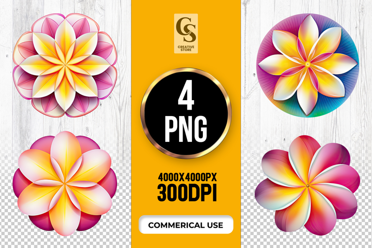 4 Plumeria Gradient Flowers Clipart Sublimation PNG Clipart Sublimation PNG Files Perfect for Greeting Cards, Invitations, Junk Journal, Party Decor, Scrapbooking and many other craft projects.