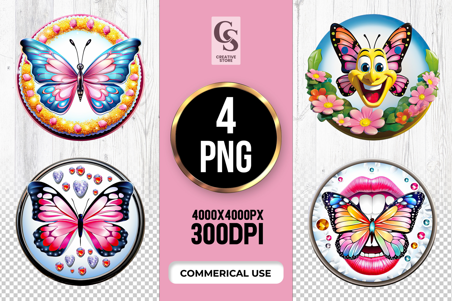4 Colorful Butterfly Clipart Sublimation PNG Files Perfect for Greeting Cards, Invitations, Junk Journal, Party Decor, Scrapbooking and many other craft projects.