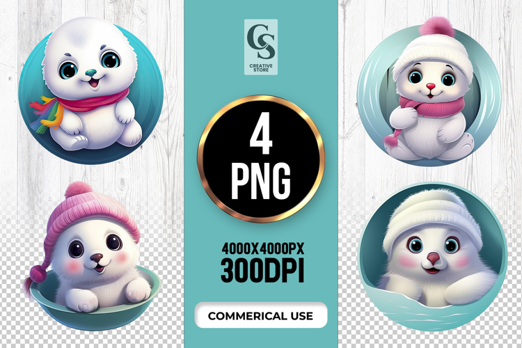 4 Cute Winter Seal Clipart Sublimation PNG Files Perfect for Greeting Cards, Invitations, Junk Journal, Party Decor, Scrapbooking and many other craft projects.