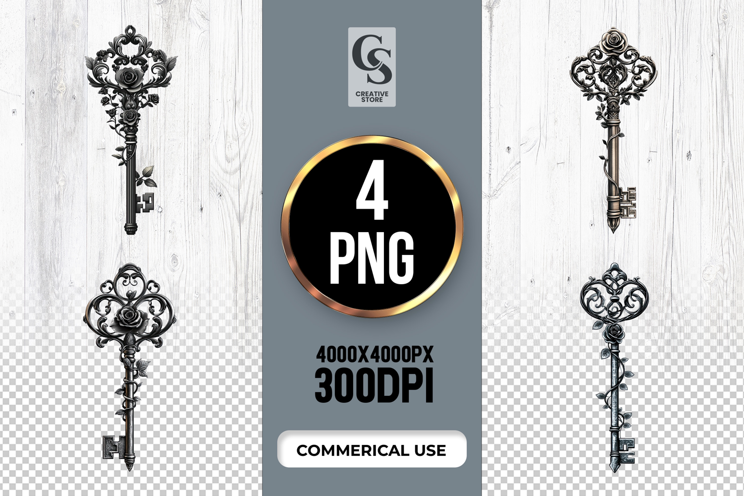 4 Vintage Key Clipart Sublimation PNG Files Perfect for Greeting Cards, Invitations, Junk Journal, Party Decor, Scrapbooking and many other craft projects.