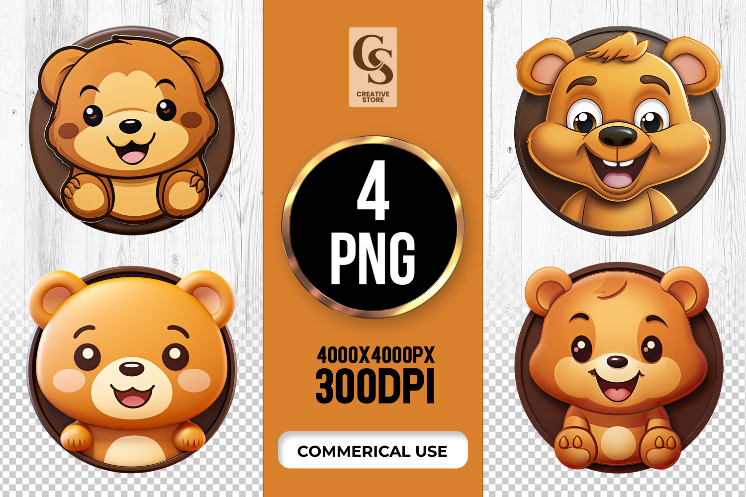 4 Cute Baby Bear Clipart Sublimation PNG Files Perfect for Greeting Cards, Invitations, Junk Journal, Party Decor, Scrapbooking and many other craft projects.